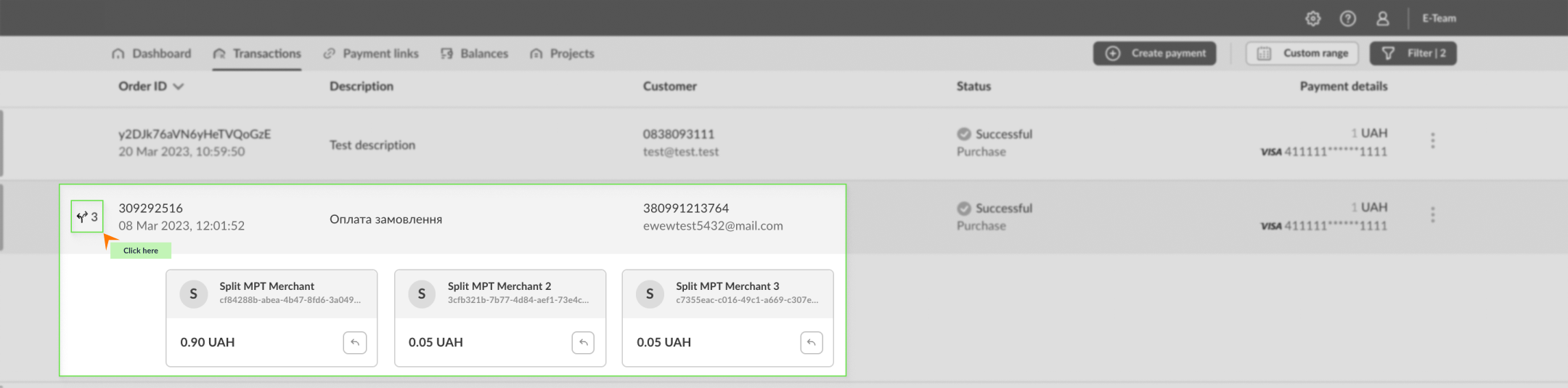 Розділ "Платежі" дозволяє вам переглядати інформацію про всі ваші транзакції та їх деталі, фільтрувати відповідні записи, ініціювати вторинні операції за платежами та експортувати дані у форматі таблиць.