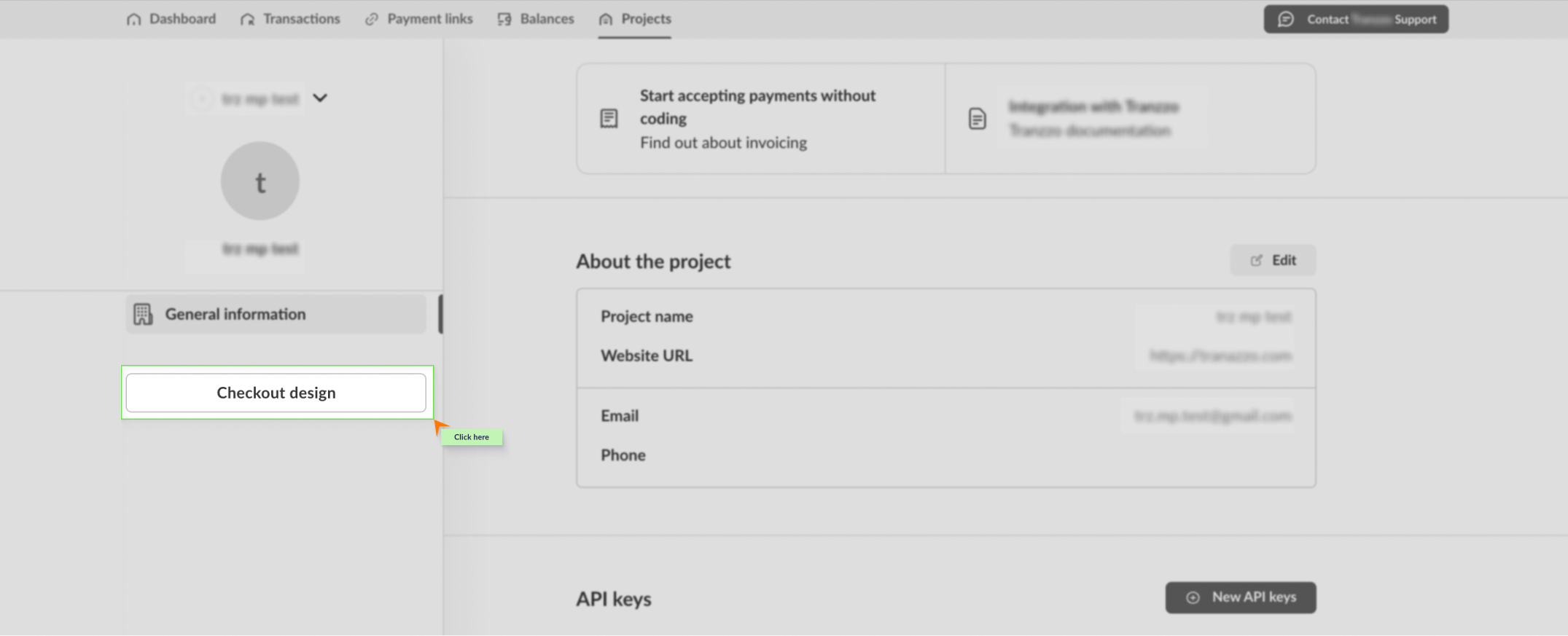 У розділі "Проєкти" ви також маєте можливість самостійно налаштувати зовнішній вигляд hosted-чекаута. Для цього необхідно обрати проєкт, платіжну сторінку якого ви хочете кастомізувати та перейти до вікна "Дизайн чекаута".
